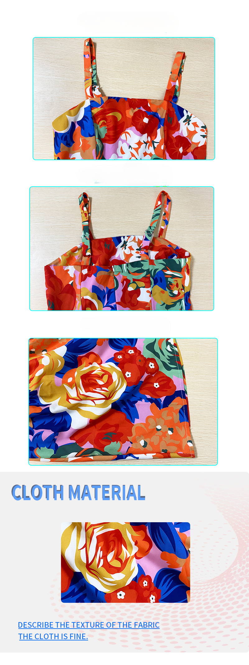 2023 spring and summer new women's temperament printing high waist sexy suspender dress